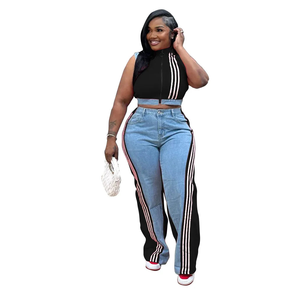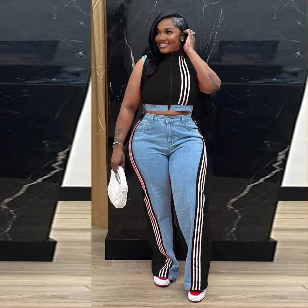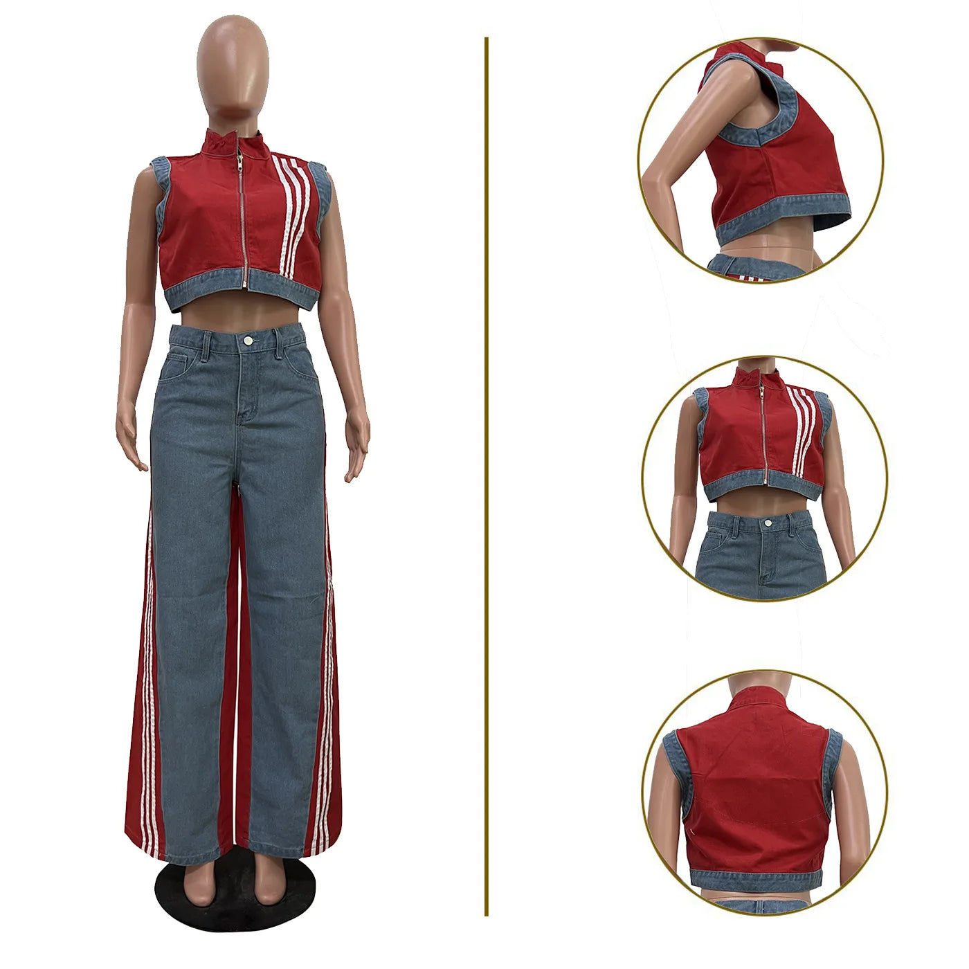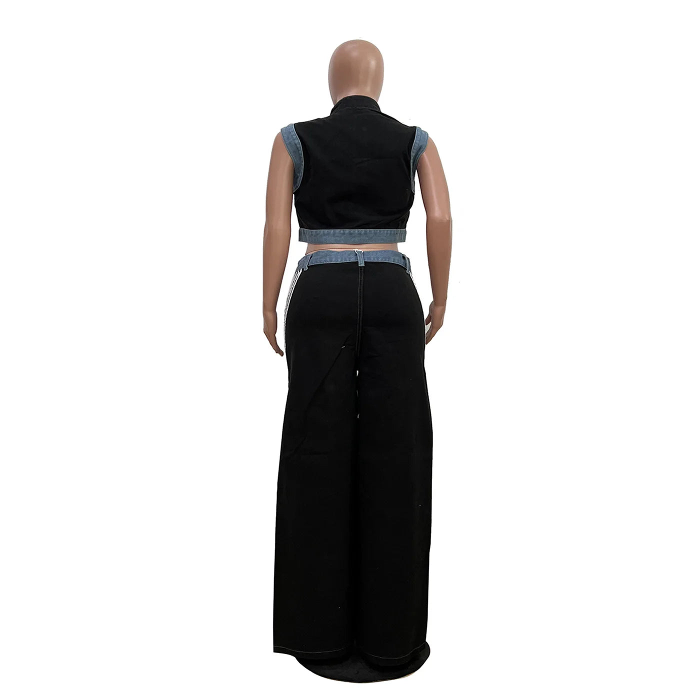 2 Pieces Women's Sets 2025 Spring Summer Denim Sleeveless Suit Tops And Wide Leg Pants Suits Two Piece Set Tracksuit Outfit