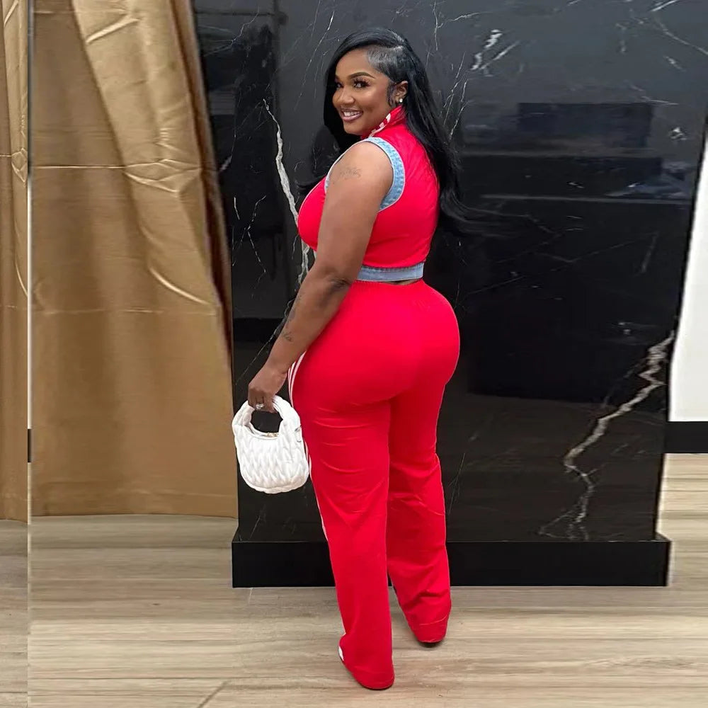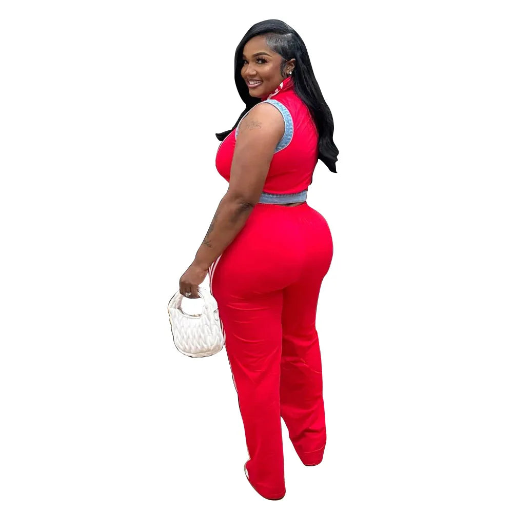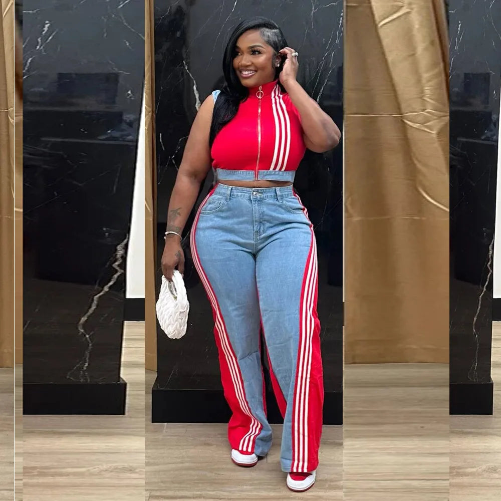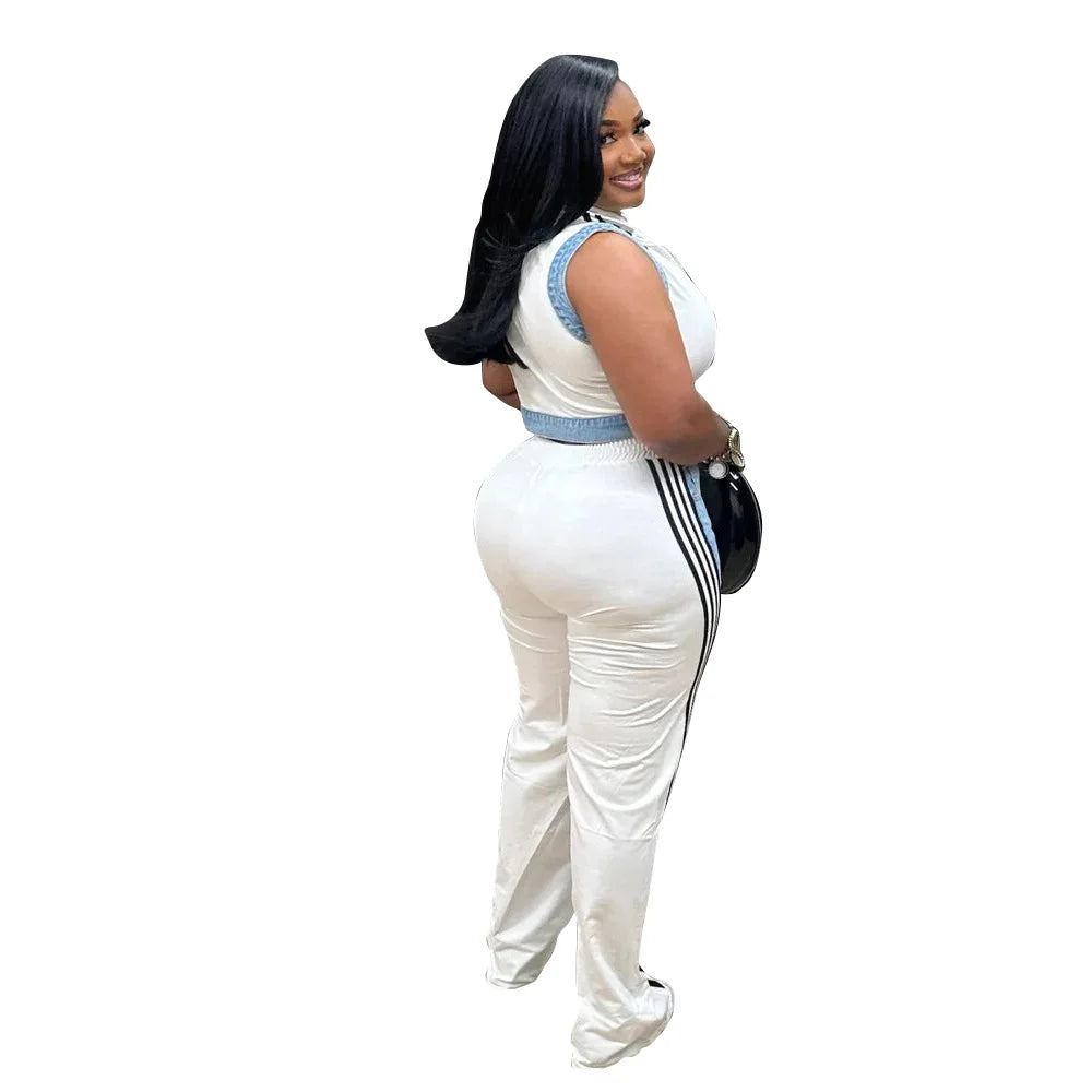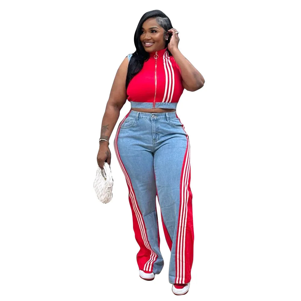 2 Pieces Women's Sets 2025 Spring Summer Denim Sleeveless Suit Tops And Wide Leg Pants Suits Two Piece Set Tracksuit Outfit