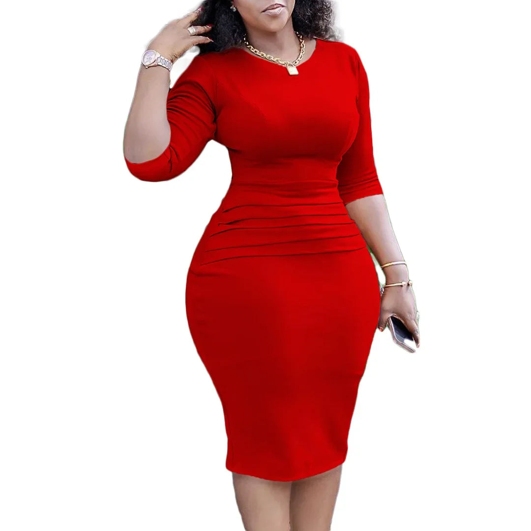 African Dresses for Women Elegant Summer African Women 3/4 Sleeve Polyester White Red Green Knee-length Dress African Clothes