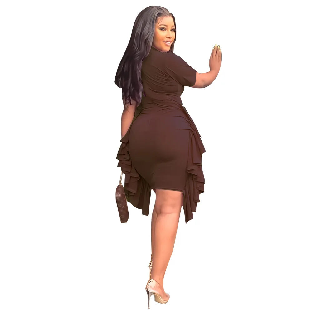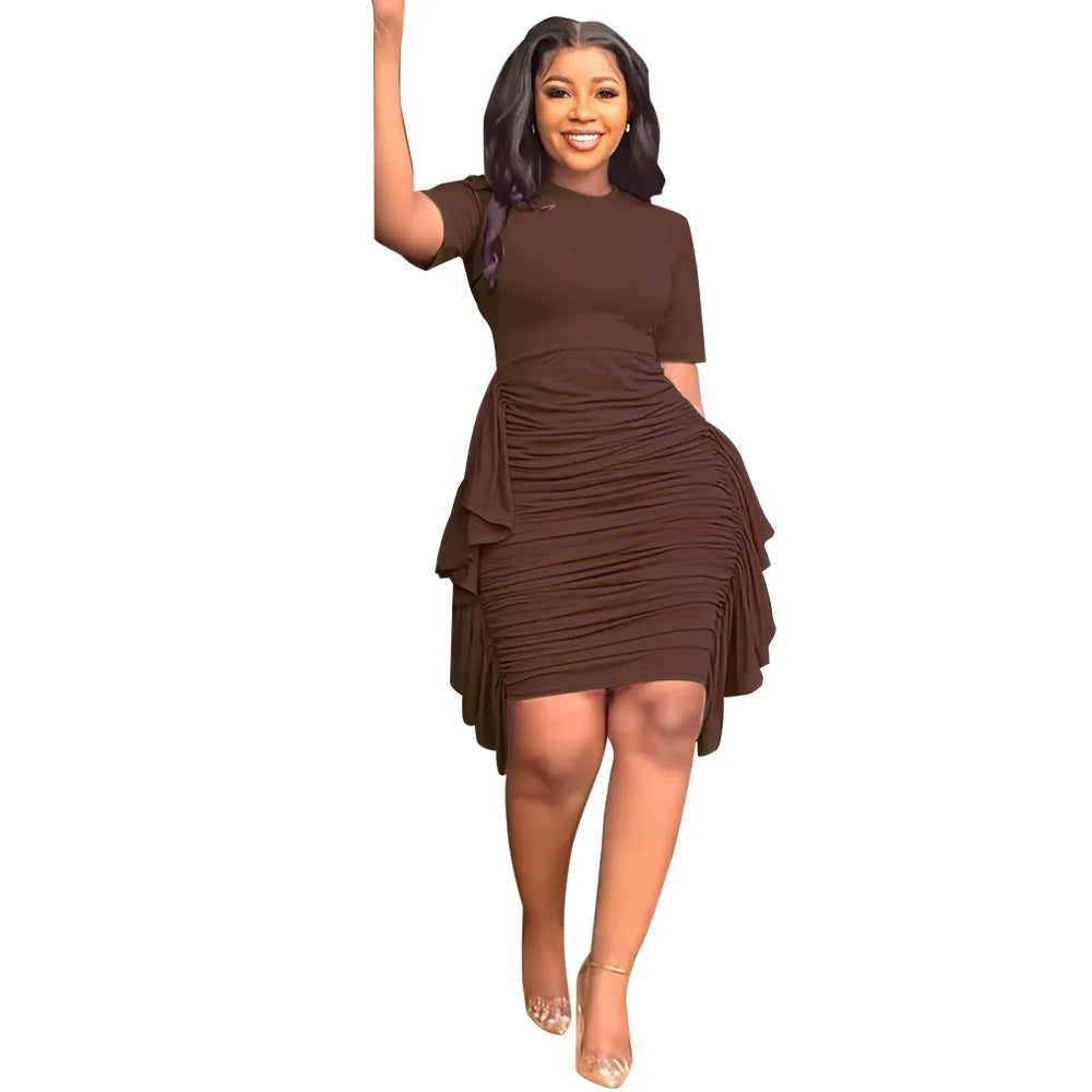 African Dresses for Women Summer Elegant African Short Sleeve O-neck Ruffled Skinny Slim Party Evening Dress African Clothing