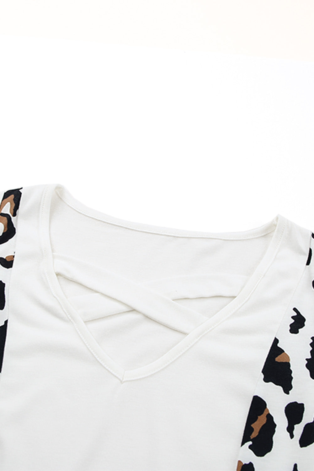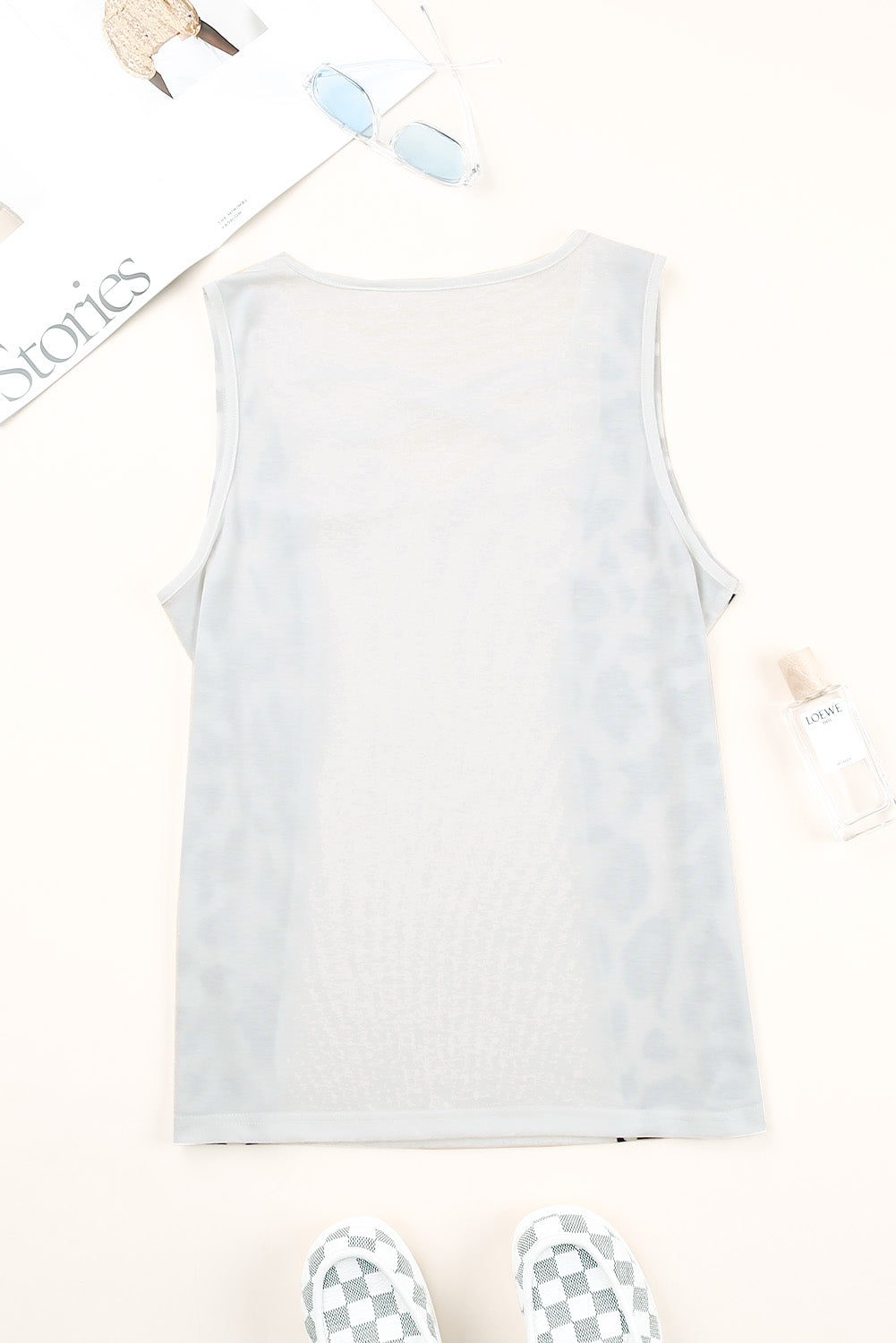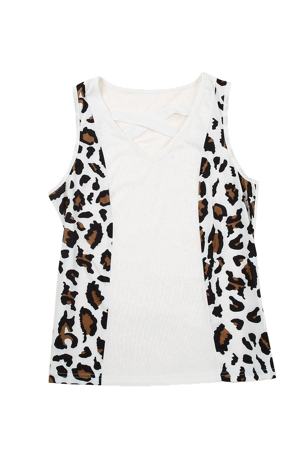 Eye-Catching Design: The tank features a V-neckline adorned with crisscross detailing, complemented by leopard print panels on each side, adding a touch of wild sophistication.